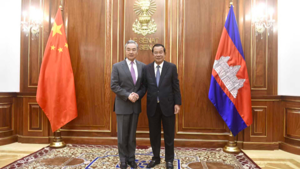 훈센 캄보디아 원수 대행, 왕이 중국 외교부장 회견